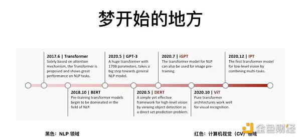 這篇論文發表之后,帶來一個 NLP 的模型,叫 Transformer,一經發布便快速屠榜,接著很快有了 BERT 模型,有了 OpenAI 的 GPT-3 模型。在視覺領域,有 DERT 模型,iGPT 模型,以及上面提到的 Vision Transformer。