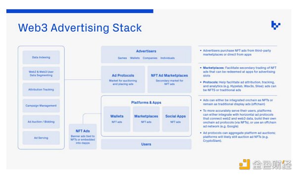 加密協議的開放性打破了依賴于孤立數據和特定用戶的傳統平臺商業模式。Web3廣告棧的核心元素已經浮現,包括廣告商、廣告協議、市場和應用程序。加密平臺要尋找可行的商業模式,而廣告則在旁靜候,耐心地等待著自己終將被采用。
