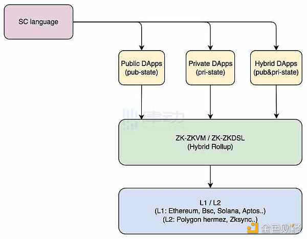 下面的圖表簡單地描繪了 Hybrid 混合 Rollup 的定位和功能。目前,已知有多個項目致力于在這個方向上進行構建。盡管每個項目的技術細節有所不同,但他們都有一個共同的愿景:為區塊鏈行業帶來更多的可能性、更高的安全性能、更多的現實世界場景和更多的日常用戶。