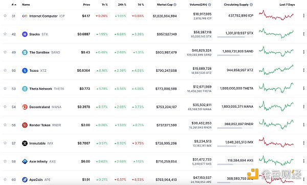 NFT總市值、市值排名前十項目 數據來源:Coinmarketcap
