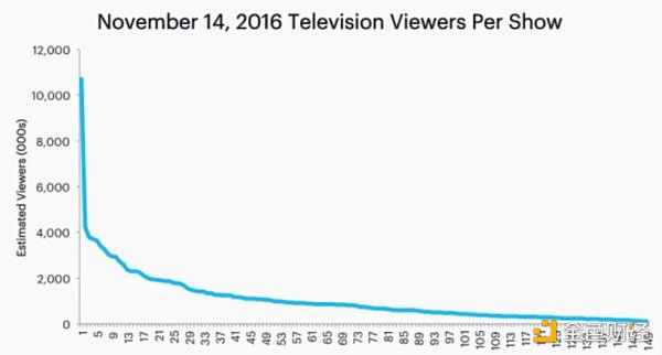 少部分熱門節目吸引了所有觀眾。同樣的現象也出現在視頻游戲、電影、小說、導演、作家等等之中: