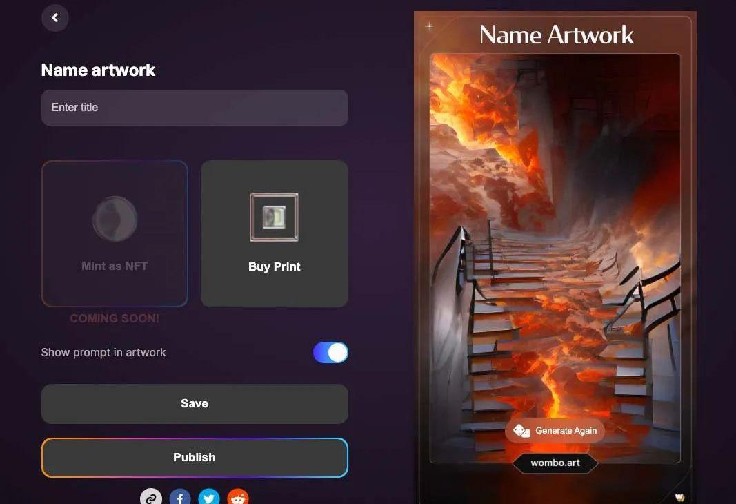 用戶只需要在《WomboDream》中輸入一個關鍵詞和一段描述并且選擇一個藝術風格,就可以獲得屬于自己的神作。