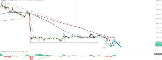 在30min走勢圖中,可以發現,目前在走第3筆,現在就關注該筆是否能繼續破新低,還是這邊企穩上漲,需要后續觀察次級別5min走勢圖中,是否形成背馳,如果后期上漲,但不能突破中樞區間上方2.25w,估計還繼續要震蕩。因此,這邊位置還需要耐心等待,切記追漲殺跌。