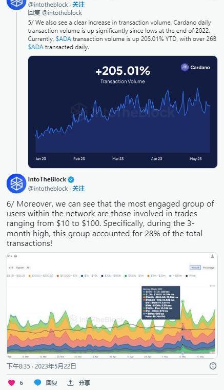 卡爾達諾的交易量也從2022年的低點大幅反彈。從長遠來看,ADA的交易量在年初至今增長了約205%。