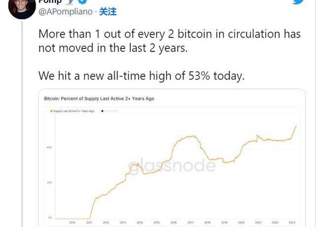 根據MorganCreekDigital創始人AnthonyPompliano提供的數據,在過去兩年中,超過50%的BTC供應量沒有發生變化。這表明隨著價格飆升,許多地址抵制了出售比特幣的沖動。