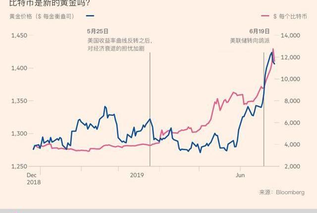 TimCulpan在八月初發現,比特幣與黃金間的相關性自五月來已從0.496上升至0.827,呈強勢正相關。從下面這張《金融時報》的圖表就可以看出,比特幣似乎一直在追隨黃金的走勢。雖然這種關聯并非完美,但足以引起金融界的關注。