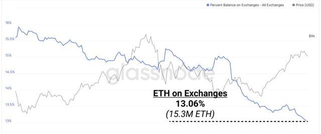 除了NFT之外,DeFi和ETH2.0質押等活動也都在支撐ETH的市場需求。最直觀的體現是,ETH在交易平臺的余額持續下降并再次創下新低(截止到8月19日,交易平臺上的ETH余額僅有1530萬枚,僅占流通總量的13%)。