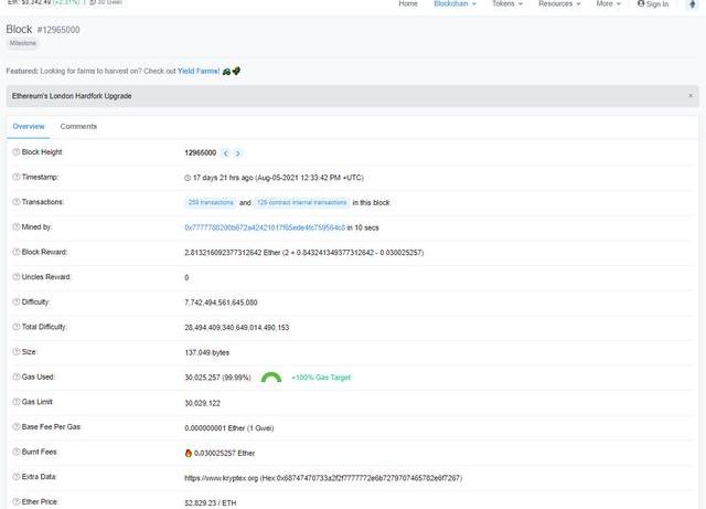 XRP/HKD+4.15%2021年8月5日,在以太坊區塊高度12,965,000時激活了第十一次硬分叉倫敦升級,本次升級為近幾年最為重要的一次。升級的第一個區塊銷毀了0.030025257Ether,成為歷史性的一刻。