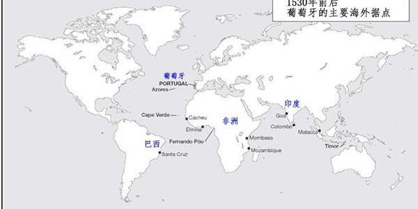 在1550年前后,葡萄牙勢力達到全盛,有50多個海外據點,分布在亞非拉三大洲,算得上是“世界性的大帝國”。但是所謂據點,基本上就是一個港口堡壘,加幾間倉庫,對周邊的內陸影響很小,只是讓往來船只進港停靠,休息整頓,補充物資,裝卸貨品。亞洲的據點多半在印度西岸,葡人以其為巡邏沿海的基地,征收買路錢,采購香料運回歐洲。非洲的據點則多半是給來往印度的船只補給,也采購一些非洲的特產。美洲的據點較少,局限在巴西沿岸,周邊還是人煙稀少的蠻荒地帶。