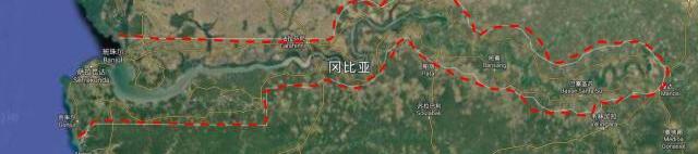 岡比亞雖然面積不大,但也是一個國家,它西鄰大西洋,而北、東、南三面被塞內加爾緊緊包圍,國土面積約為10380平方公里。狹長的岡比亞“寄生”在塞內加爾腹內,造成塞內加爾地盤幾乎被岡比亞截成兩半。從首都達喀爾去南方城市濟金紹爾,如果想要省時間,就必須穿過岡比亞境內,也就二十多公里。如果不想出國,那就得繞行,開車向東三百公里左右,再折向西三百公里左右,才能抵達濟金紹爾,是極其的麻煩的。