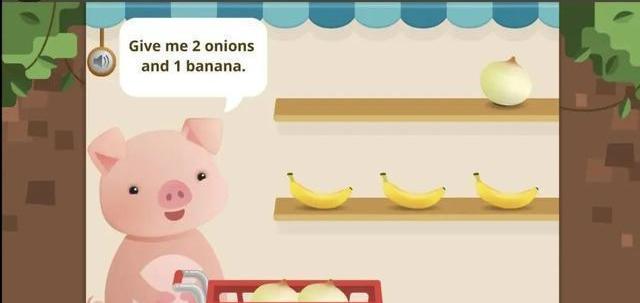 Daily模塊為小朋友精心設計數學關卡,難度逐漸上升,每過一關都會有星星獎勵。例如跟著小豬一起去逛商場,2個洋蔥,1根香蕉,不知不覺就幫助孩子們學會計數啦!
