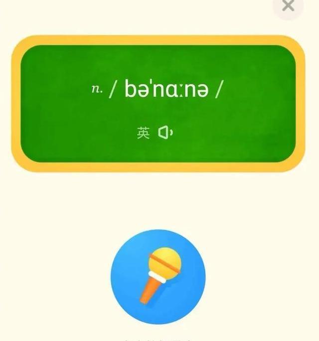 我們點開一個單詞“banana”,可以跟讀練習,訓練發音,系統還會根據發音來打分,幫助小朋友及時糾音。