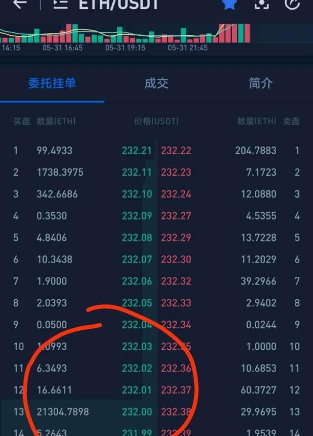 文章里面寫道短期會有回調的風險,昨天晚上的暴跌之中,我一直在盯盤,發現234~232個這個區間現貨起碼有10萬個以太坊接盤。