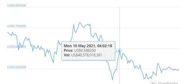 但節目播出后,狗狗幣并未繼續上漲,而是持續下挫,在一天之內從0.718美元下跌到0.446美元。似乎是為了補救,在5月10日,馬斯克又發推文稱“SpaceX明年會將衛星Doge-1發射到月球上,這一任務將使用狗狗幣作為唯一付款方式。”在推文發布后,狗狗幣的價格開始升溫。