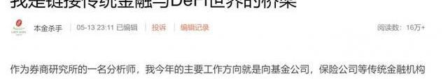 最近,有幣圈朋友發現一個年輕有為的大V“本金殺手”。這位“本金殺手”不僅玩得一手好幣,還是知名券商的分析師,于是,幣圈朋友發來詢問,表示特別想知道這位青年才俊是哪家分析師。