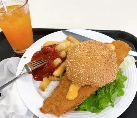 15.AC2食堂的魚柳包在香港高校學子中十分出圈,比手掌大的魚柳炸得金黃酥脆,配上醬料和生菜、番茄等蔬菜,再搭配粗薯和汽水,一套下來能量和滿足感都達到最高,而且只需要40港幣!