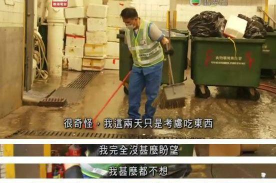 節目中,他千辛萬苦找到的工作,是一份時薪二十五港幣的掃街工作,可能這種體力勞動讓他有些吃不消,僅做了兩個小時的工作他還以為已經做了四個小時。