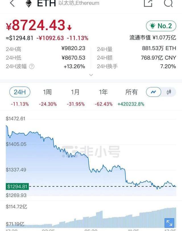 與此同時,以太坊較比特幣價格跌勢更猛。從9月13日晚開啟暴跌模式,這一周以來,一路跌破1800美元、1700美元、1600、1500美元、1400美元、1300美元,最低下探至1283美元,截至發稿時間9月19日17時25分,最新價格報1294美元,24小時跌幅11.13%,7日跌幅24.3%,年內跌幅62.43%。