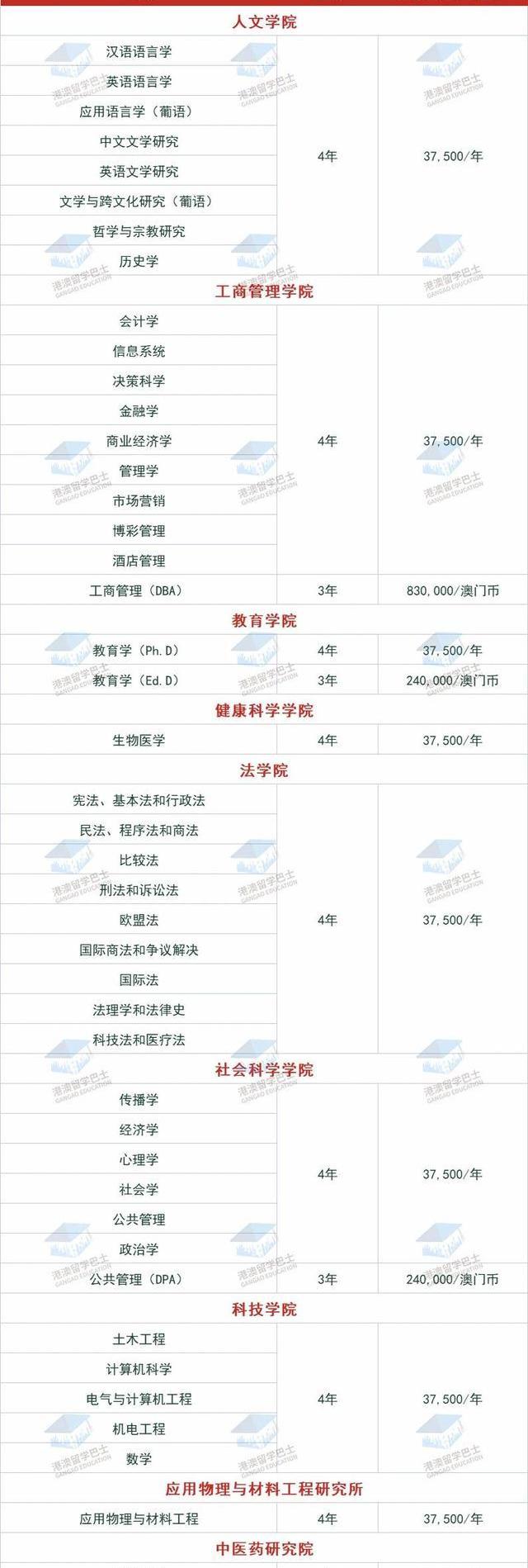 注:澳門大學的博士課程的錄取遵循“先到先得”的原則,尤其是金融學和土木工程兩個專業。