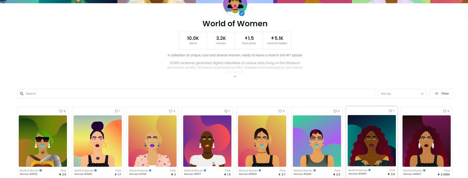 排名第8,WorldOfWomen,從數據可以看出,該項目最低價1.5枚ETH。