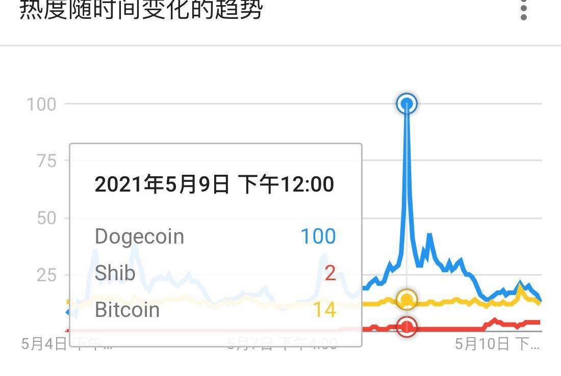 從全球范圍來看,谷歌趨勢顯示,近期DOGE和SHIB的熱度居高不下。5月9日,“Dogecoin”熱度達到最近一周的頂峰,當日在谷歌上有200多萬次搜索,位列當日谷歌熱榜第二。5月10日,熱搜詞“ShibaInucoinprice”有2萬多次搜索,位列熱度榜第14位。