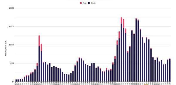3、比特幣礦工收入上漲4.3%甚至6.271億美元,以太坊質押收入增長幅度略低,約為2.9%,達到1.048億美元。以太坊Shanghai-Capella主網升級預計將在三月進行,屆時質押的ETH將會被允許提取。