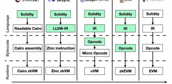 相比之下,ZKRollup從定制的虛擬機開始,意味著項目需要進行大量的工作,即“解釋”來自EVM的代碼或使用從頭開始編寫的新代碼。
