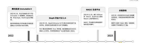 引用StepN團隊在2021年SolanaHackerson上的一句話:“一個好的Game-Fi項目首先必須是一個好的游戲,其次是一個運行流暢的應用程序,然后是一個有意義的代幣經濟學”。對于未來Web3的游戲的增長點市場一直有不同猜測,從早期的P2E、MMO到發行平臺,而目前我們認為下一輪游戲賽道可能的增長點為全鏈游戲。