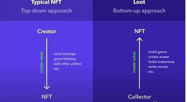 觀點二:游戲內經濟系統甚至物品的設計產出應當交由玩家,即純粹的去中心化市場經濟模式。這種模式在2021年9月的Loot生態中得到實踐并引發市場關注。不同于傳統Web3游戲項目,創作者設計創作NFT賣給收藏者,Loot收藏者也會參與到游戲生態的建設中。盡管Loot生態在后續的表現欠佳,但在2023年全鏈游戲進入視野時Loot又成為了人們的討論話題。(有意思的是,2022年底大火的MAGIC平臺生態也是由2021年的Loot衍生出的項目)