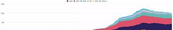 因此,首先,簡要介紹一下目前的情況。正如Dune上數據分析指出的那樣,到目前為止,相對于加密貨幣過度抵押和算法穩定幣,法幣抵押的穩定幣是最廣泛使用的。