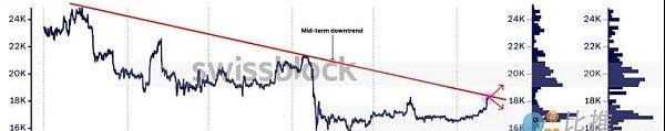 Glassnode根據BTC價格與交易量的對比數據分析表示,“從1月1日開始的新的看漲趨勢將比特幣推至18.6萬美元至18.9萬美元的水平,但需要交叉至19000美元才能在19000美元至21000美元附近獲得新的交易通道。由于比特幣面臨中期下行趨勢,預計這些水平附近會有阻力。如果價格未能突破趨勢線,我們預計會回撤至16-17,000美元區域。”