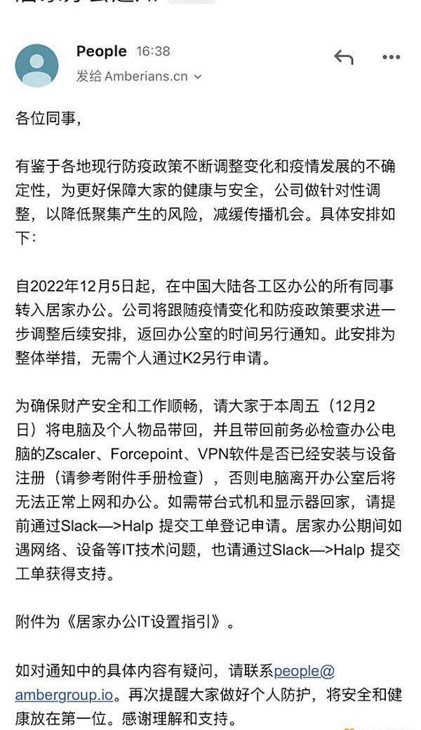 12月5日,全公司發布郵件,中國大陸員工全部轉為居家辦公狀態,他們無法在線下找到相關人員。