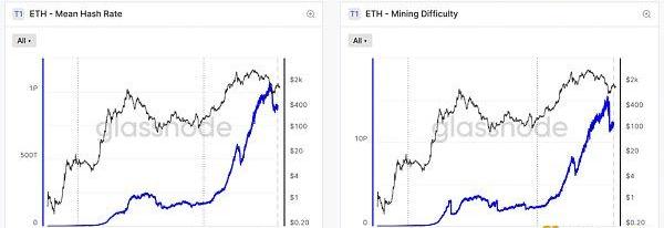 ?Glassnode:2016-2022ETH哈希率和挖礦難度統計