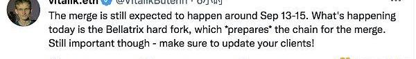XRP/HKD+1.59%正如Vitalik所言,以太坊的合并預計將在9月13-9月15日發生,而今日的Bellatrix硬分叉升級,則是這次合并的前置準備工作,但它仍然會很重要。