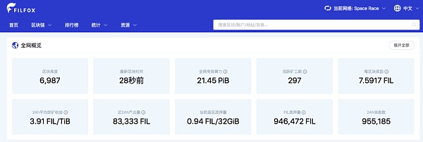 根據Filecoin區塊鏈瀏覽器Filfox的數據,自8月25日早上6點開賽以來,太空競賽已經吸引了全球約300名礦工參與,全網有效算力超過21PiB。?