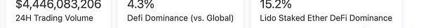 2.過去24小時去中心化交易所的交易量44.46億美元