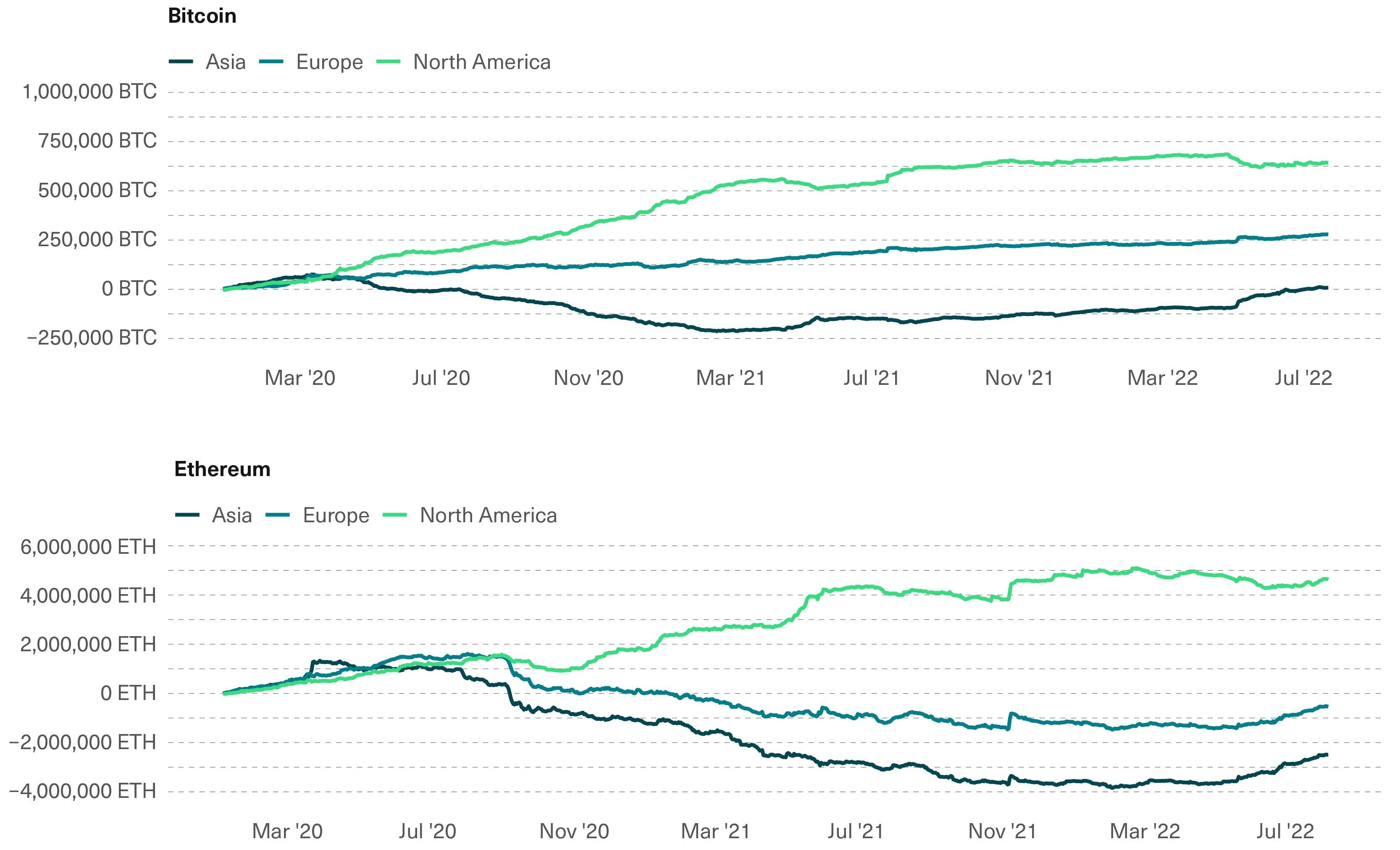 第二季度北美實體流出加密貨幣,亞洲和歐洲流入