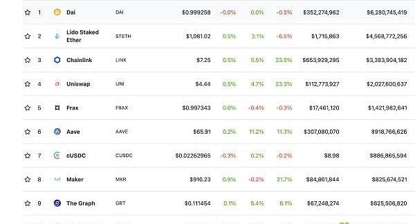 DeFi項目鎖定資產前十排名及鎖倉量數據來源:defillama