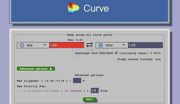 隨后前往Curve,將MIM再次置換為USDC。這樣一來,在保持90%流動性的情況下,我們還能獲得2%的APY,基本上是白嫖了。