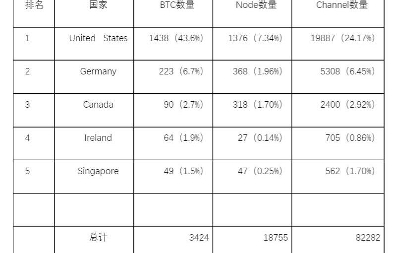 從Bitcoinvisuals的統計來看,閃電網絡的使用量和節點數量一直在上升。通過1ml的節點地理統計,相當部分節點位于美國。