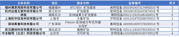 而在前三批次備案信息中,也多次出現了與礦池、挖礦相關的服務備案。