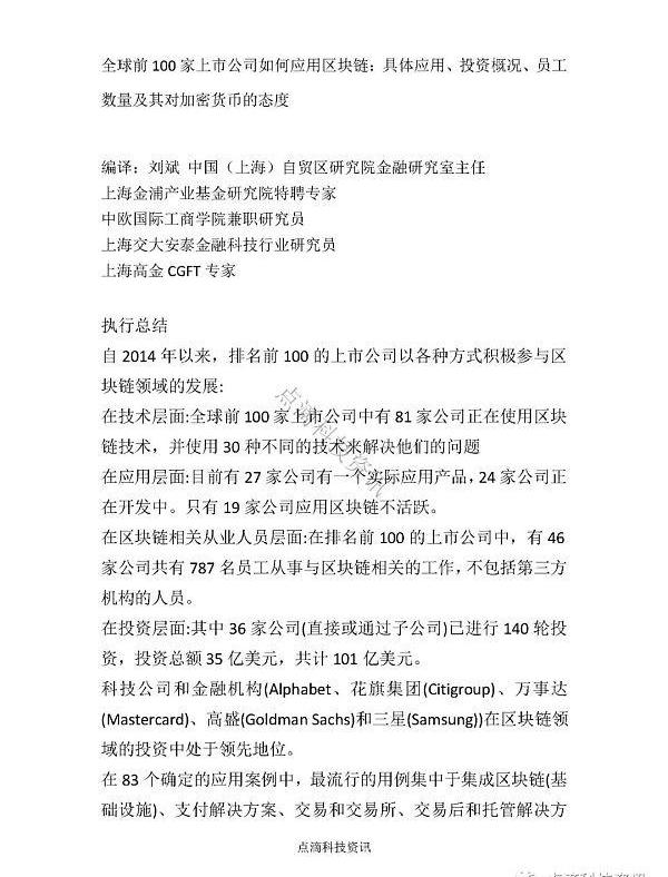 XRP/HKD+0.28%原文標題:全球TOP100上市公司如何應用區塊鏈:具體應用、投資概況、員工數量及其對加密貨幣的態度