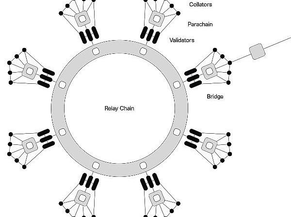 波卡在架構上主要有三部分,分別是平行鏈、中繼鏈、轉接橋。中繼鏈是一條基于substrate創建的區塊鏈,作為波卡網絡的中心,負責信息交互的驗證,保護和協調平行鏈,維護整個網絡的安全;平行鏈通過插槽接入中繼鏈運行,并與中繼鏈進行交互,負責處理各種“瑣事”,目前來看,這個平行鏈既可以是智能合約平臺、DeFi中心,也可以是任何專注于不同業務的協議。
