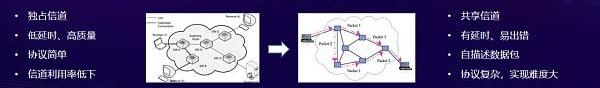 做一個形象的比擬,數據包這個方案,相當于把水裝在很多瓶子里,每個瓶子上面都有包裝,寫清楚這是由誰發給誰,水的質量、成分,這是第幾瓶水等等,這叫自描述信息。數據從流變成包,整個網絡通信形式就發生了根本的變化,核心點是把過去簡單的基于流的通訊形式,變成基于可自描述的數據包,通過緩沖、存儲、復制、路由、轉發等等一系列手段,構建高度靈活可擴展的網絡。