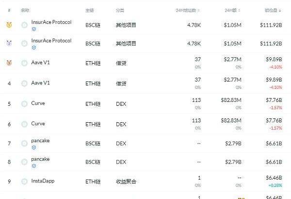 DeFi項目鎖定資產前十排名及鎖倉量,數據來源:Debank