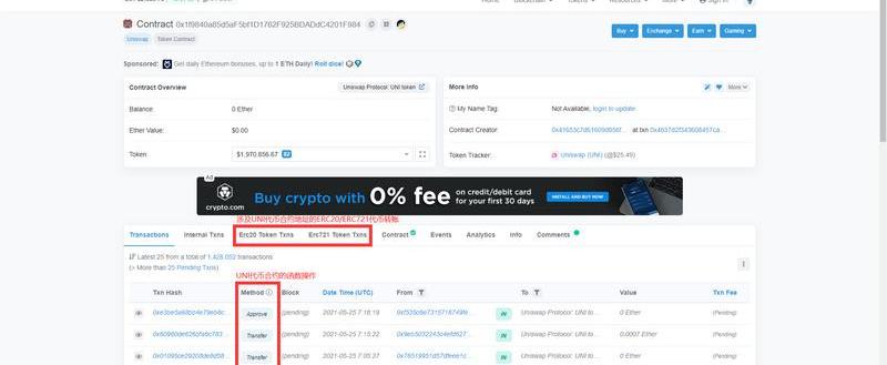 此處要注意,瀏覽器頁簽不同,對應查詢頁面的內容結構也是完全不同的,圖10中顯示的區塊鏈數據為所有涉及UNI代幣的交易,所以交易調用函數多種多樣。