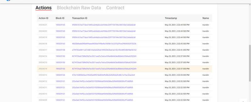 Bloks.io瀏覽器相對全面的查詢了指定智能合約賬戶的詳細交易信息和存儲信息,包括交易元數據、賬戶信息、資源消耗、不同存儲表的指定查詢等。結合另外兩個區塊瀏覽器和實際參與Dapp交易內容進行對比,確保交易內容正確。