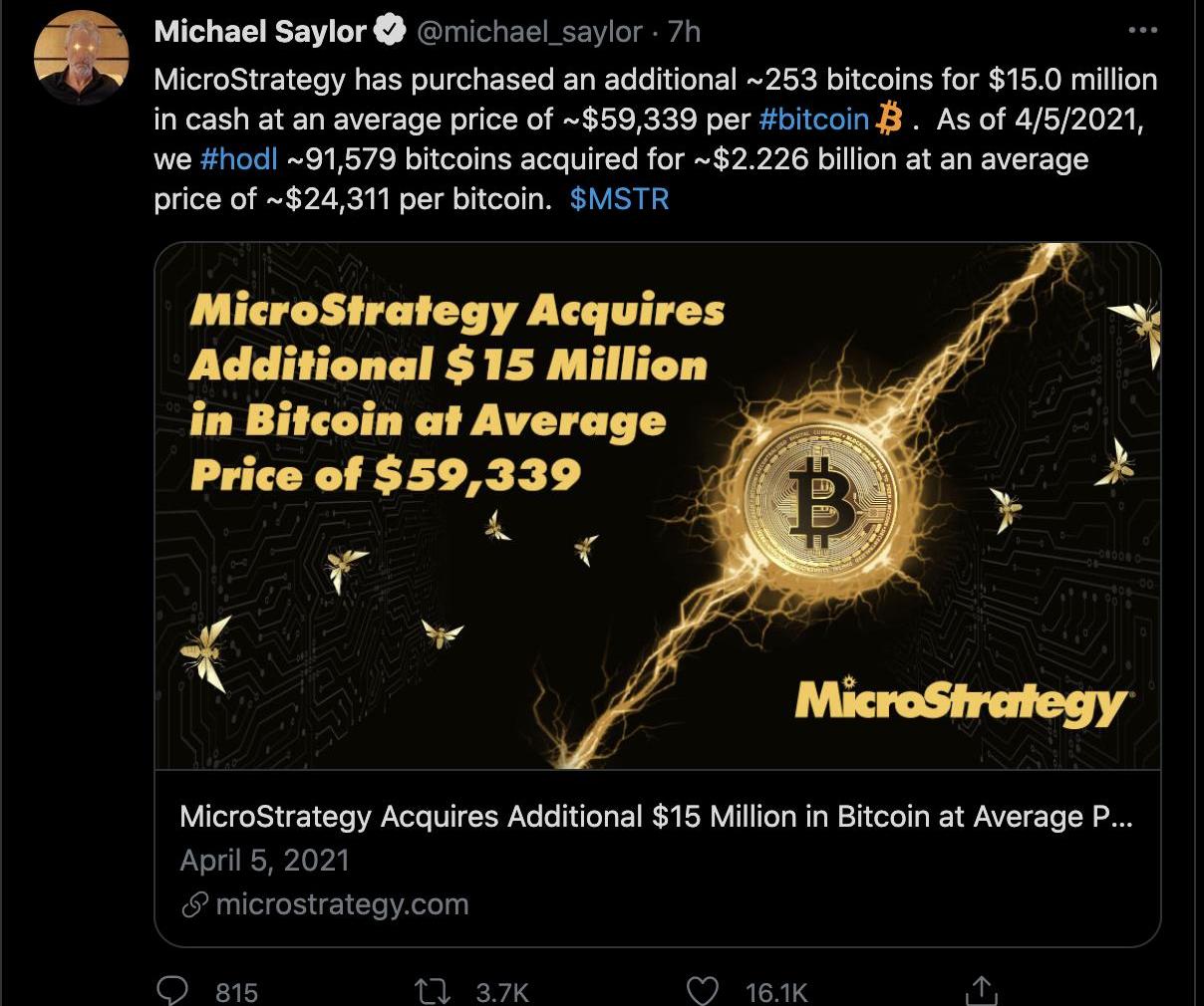 在Microstrategy的首席執行官MichaelSaylor在推特上透露了購買消息之后,其推文得到了很多回應。