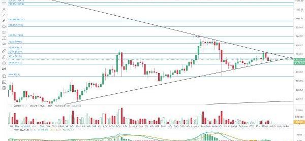 調整量能一般,近期還是三角末端整理走勢,后續將迎來變盤,日線收線不破510美金,短線可以暫時持有。