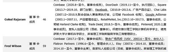 Coinbase創始人BrianArmstrong在創辦Coinbase之前有豐富的創業經驗。整體來看,Coinbase高管團隊與董事會成員多有Facebook、Google、Airbnb、LinkedIn等硅谷互聯網公司從業背景或為著名風險投資人,也有部分法律合規履歷資深。